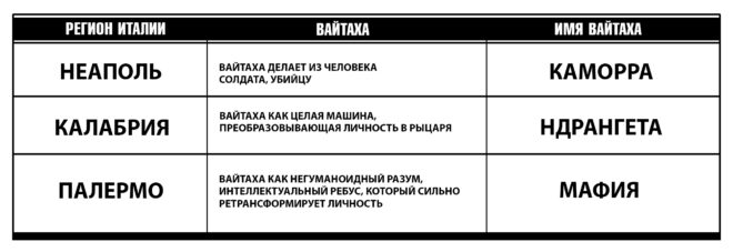 В том же Неаполе тамошняя Вайтаха делает из человека солдата, убийцу. То есть, если ты не будешь там убивать, то ты не сможешь там жить. В Неаполе важно понимать: убей быстрее, чем убьют тебя. В Неаполе Вайтаха называется Каморра.